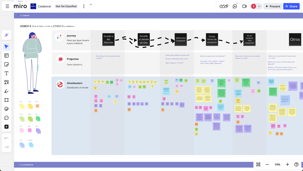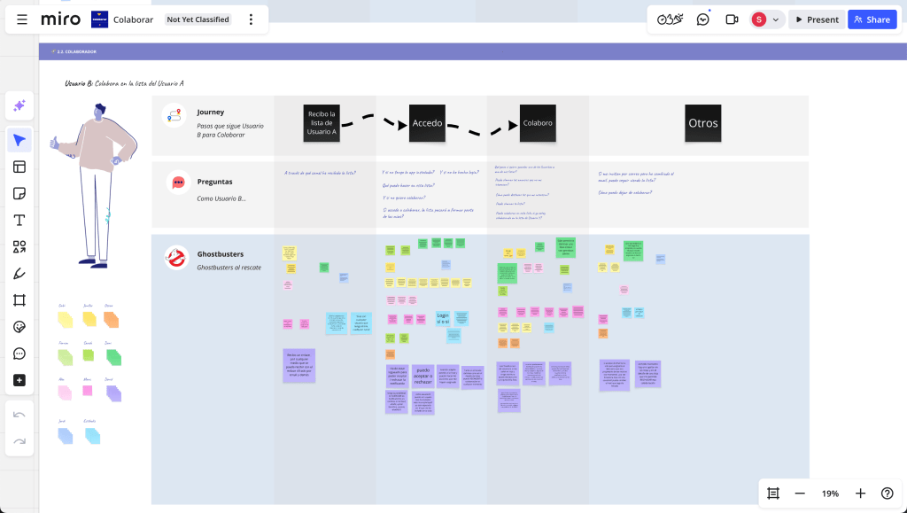 The first sessions focused on “User A”. Together, we walked through their journey step by step, identifying key actions and surfacing questions at each stage. For example: