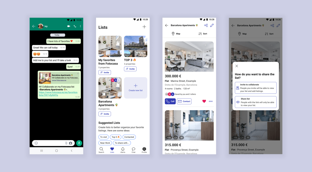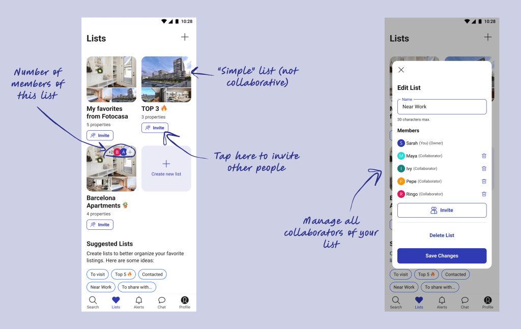 Months earlier, we had redesigned our Favorites feature into customizable, shareable lists. The result was a pioneering feature in Spain’s real estate market that not only made the home search more organized for users, but also strengthened our competitive position.