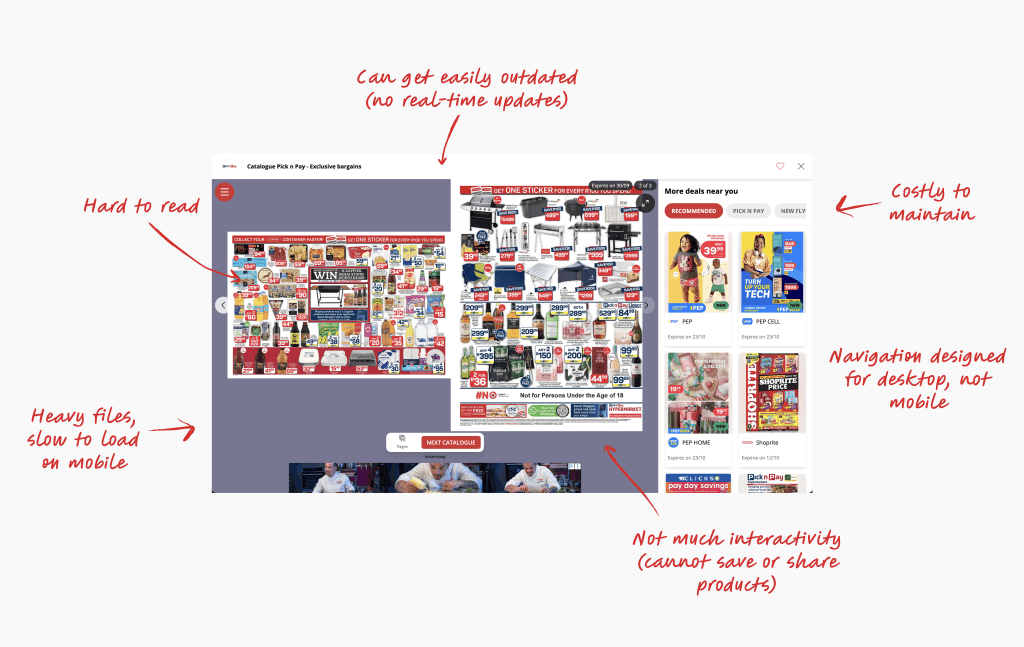 Traditionally, catalogues on the platform were little more than scanned pages. While they were familiar to clients this format came with important limitations for both users and businesses. Some the main user paint points were: